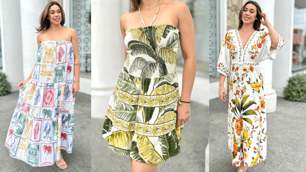 - Tropical chic: vestidos longos, estampas inspiradas no mar, na fauna ou na flora.